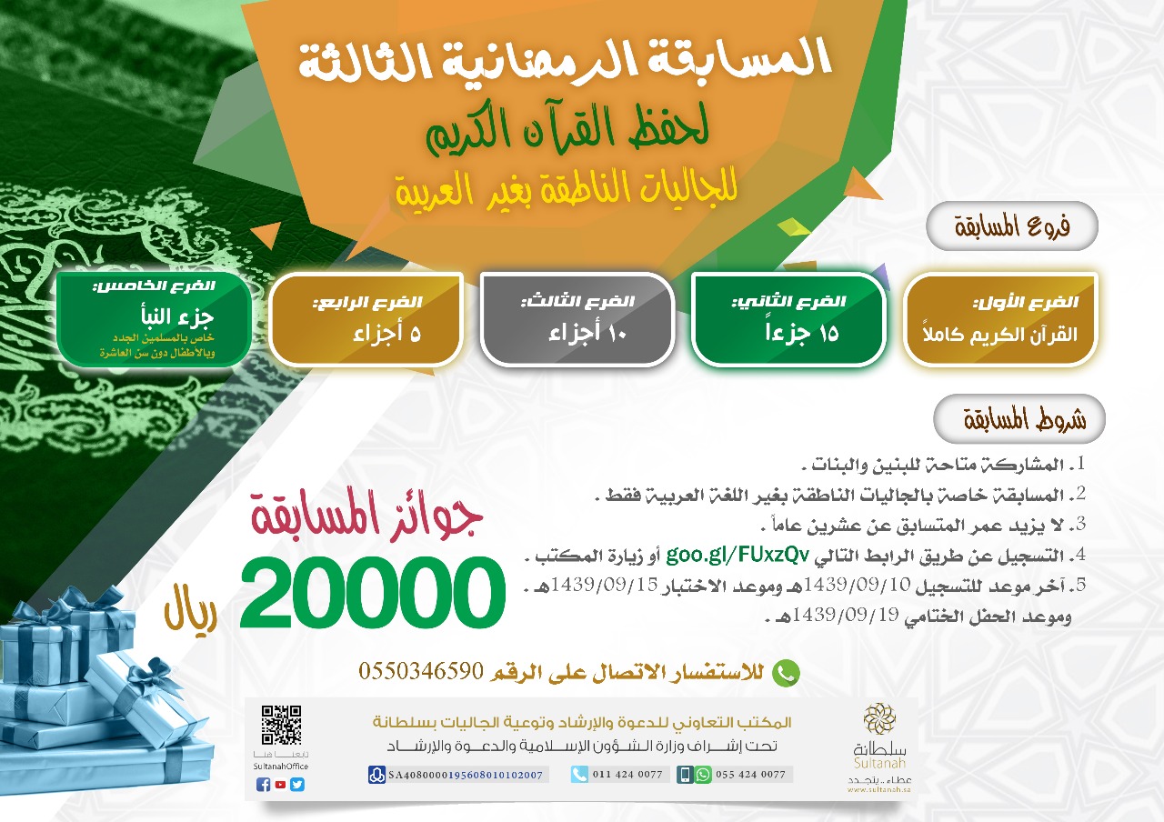 بدء التسجيل في برنامج الوافي لتعليم اللغة العربية والعلوم الشرعية لطلاب المدارس العالمية في عامه التاسع تحت إشراف المكتب التعاوني للدعوة والإرشاد وتوعية الجاليات بسلطانة بالرياض..